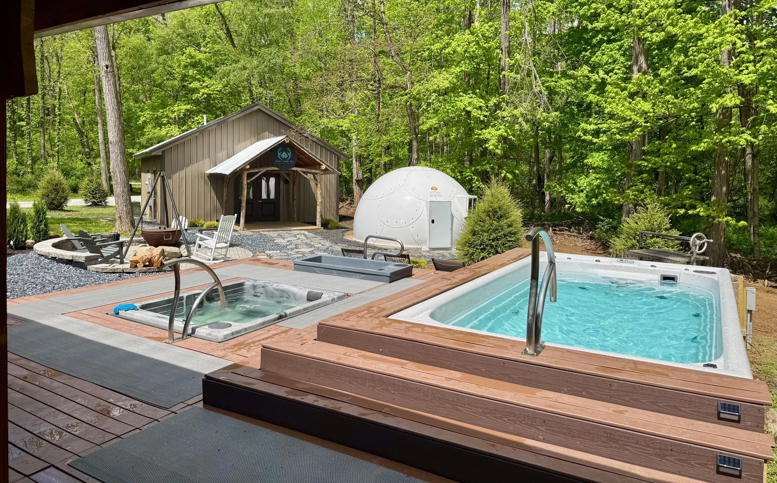 Enjoy full access to the Kuusi Nordic Spa at Sugar Creek, featuring a Sauna, Massage Chair Room, Cold Plunge, Hot Tub, Relax Pool/Swim Spa, Cold Room, and Float Pod.